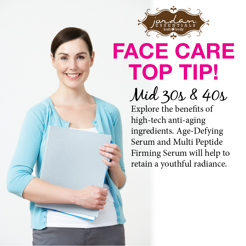 Life happens and year by year we age.  It is a fact we cannot deny.  Maybe you are like me and want the high end results and the naturally based products you find at health food stores.  Jordan Essentials has a beautiful solution and marriage of natural power house botanicals and smart science.  We have solutions from teen acne to aging lines and wrinkles. If I was on a dessert island and could only take a few things my JE Face Care is one of them, not only for the results but because of how it makes my skin feel hydrated and healthy. Try out our skin care line by asking your Consultant for an in home spa and wellness facial clinic.  I think you will fall in love with the fresh cleansers, powerful, yet gentle exfoliation,  detoxifying Clay Mask and finishing with moisture rich anti aging solutions and moisturizers. Face the Future with Jordan Essentials!